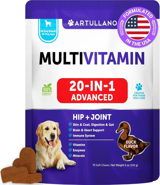 20 in 1 Dog Multivitamin with Glucosamine Chewable Dog Vitamins and Supplements Senior & Puppy Multivitamin Chews for Pet Hip & Joint Support Immunity Mobility Skin Digestion 70 Soft Treats