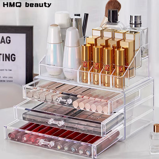 Acrylic Cosmetics Storage Case Four Drawer Type Transparent Cosmetics Box Large Size Manicure Makeup Organizer Display Case