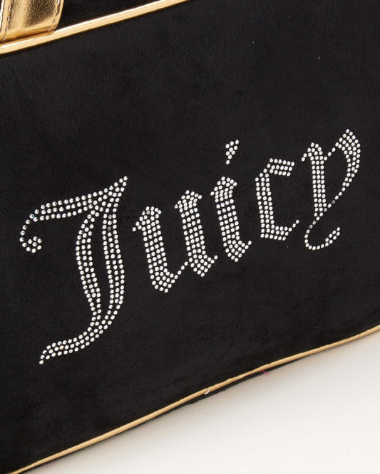 Black Makeup Bag Cosmetics Organizer Travel Essentials Weekender Velour Rhinestone Gold Trim