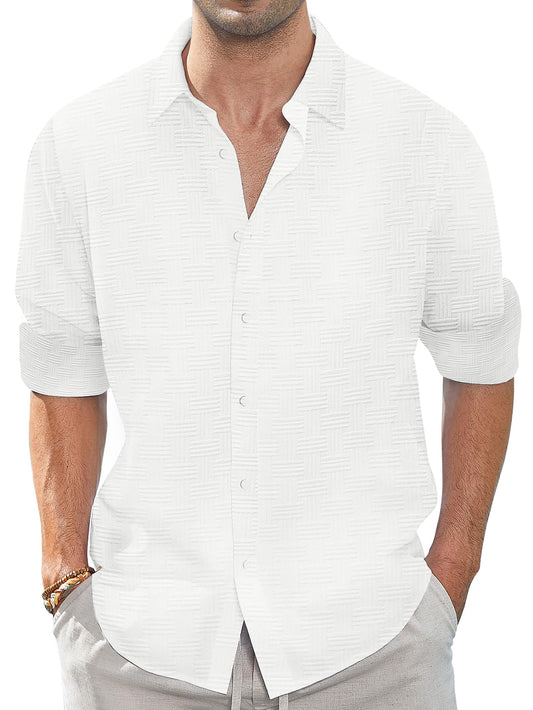 Button down Mens Shirts Long Sleeve Shirts for Men Solid Texturet-Shirts